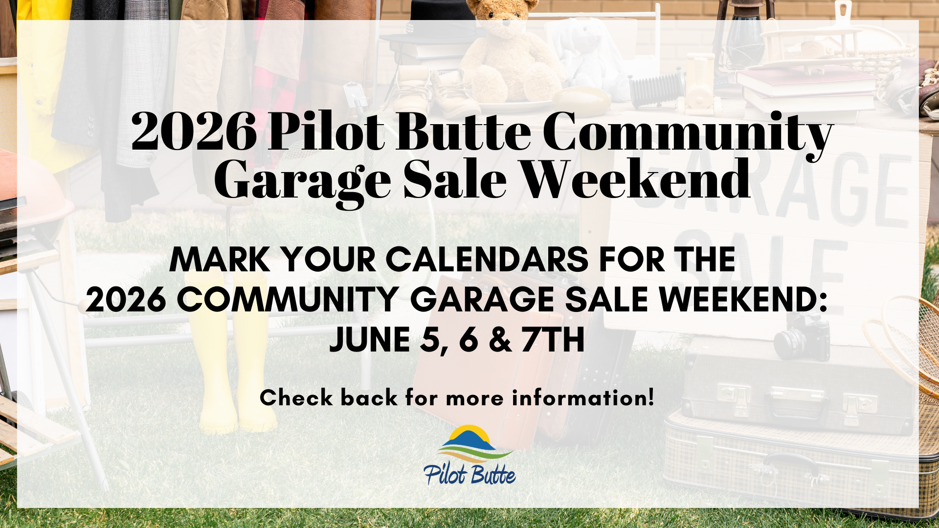 Printed maps will be available at various locations in Pilot Butte. - Maps will not include information on what is being sold at each location. The Town creates a Facebook event where residents hosting garage sales are welcome to post their address, information on their dates/hours open and items they will be selling, if they so choose, as a main reference point for all to view.