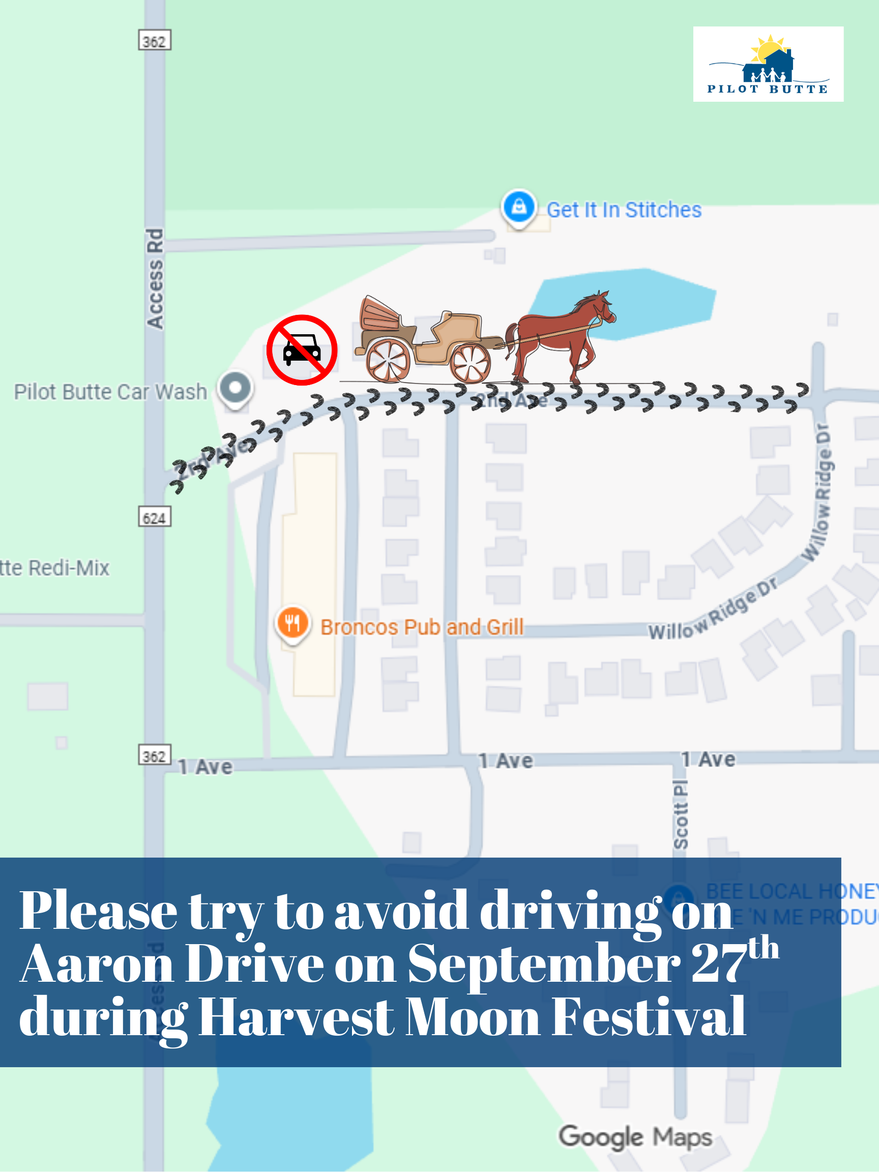 **During the Harvest Moon Festival wagon rides will be offered utilizing Aaron Drive as the designated route. We ask that residents please avoid driving on this road where possible during the event to minimize traffic while wagon rides take place.**