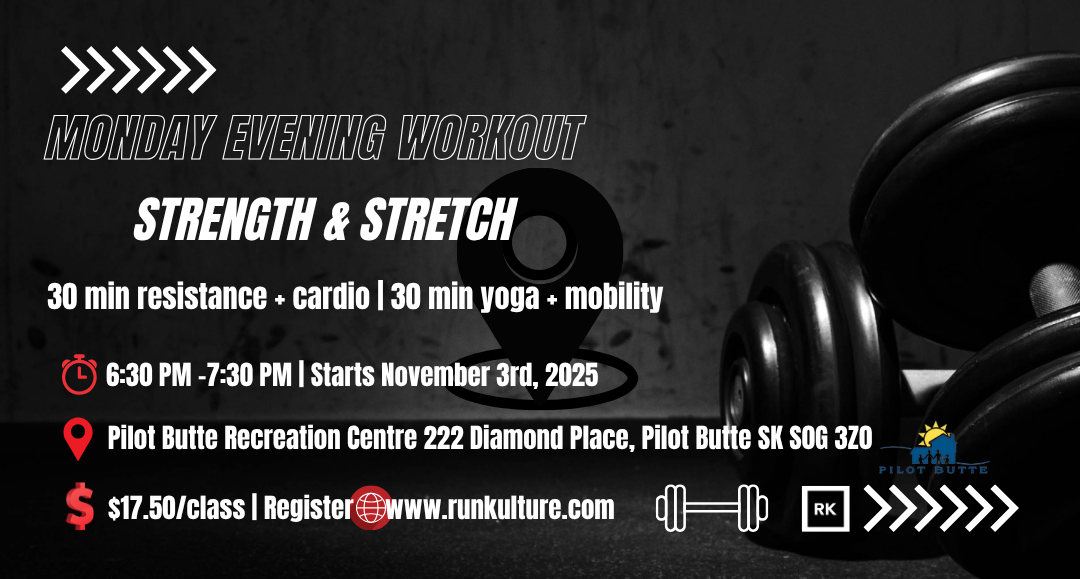 Coach Laura Sullivan is back to lead Monday Evening Fitness classes! Coach Laura has over 10 years of experience in the fitness industry and has hosted classes in Pilot Butte previously, including Monday Evening Strength & Stretch earlier in 2025, Run Club and even a Goat Yoga class!