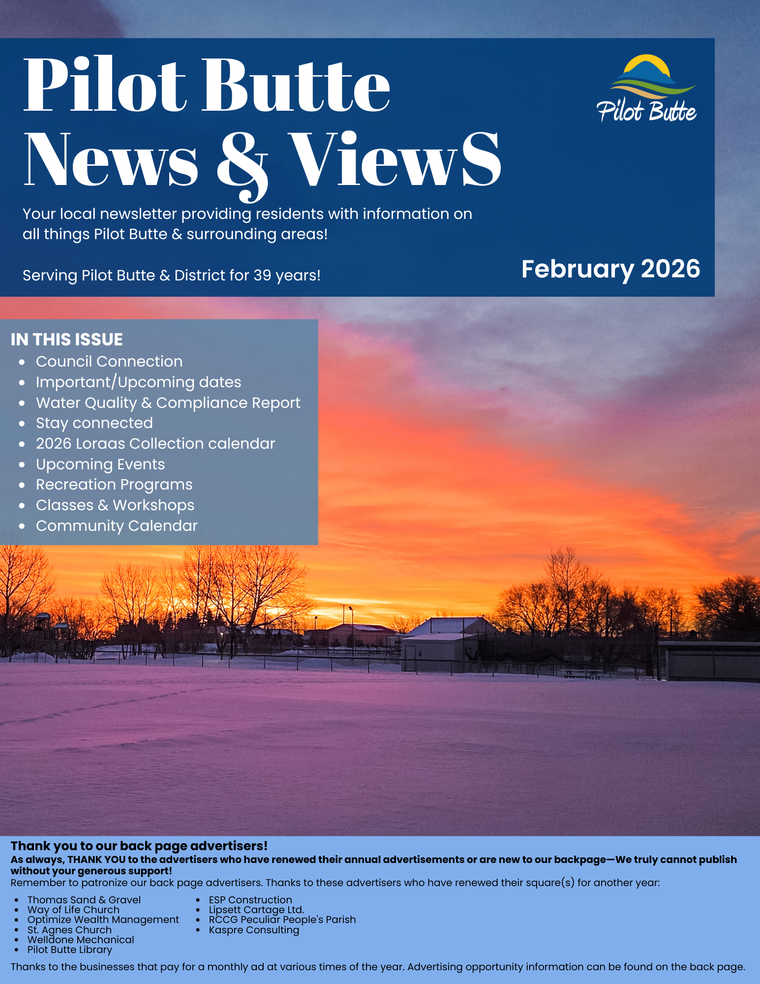 All submissions due by the 20th of the month. Any submission received after the 20th may be inserted at the discretion of the News and viewS. Please send submissions as a .pdf or .jpeg or .pub or .doc ready for insertion in the issue. For more information, please email newsletter@pilotbutte.ca