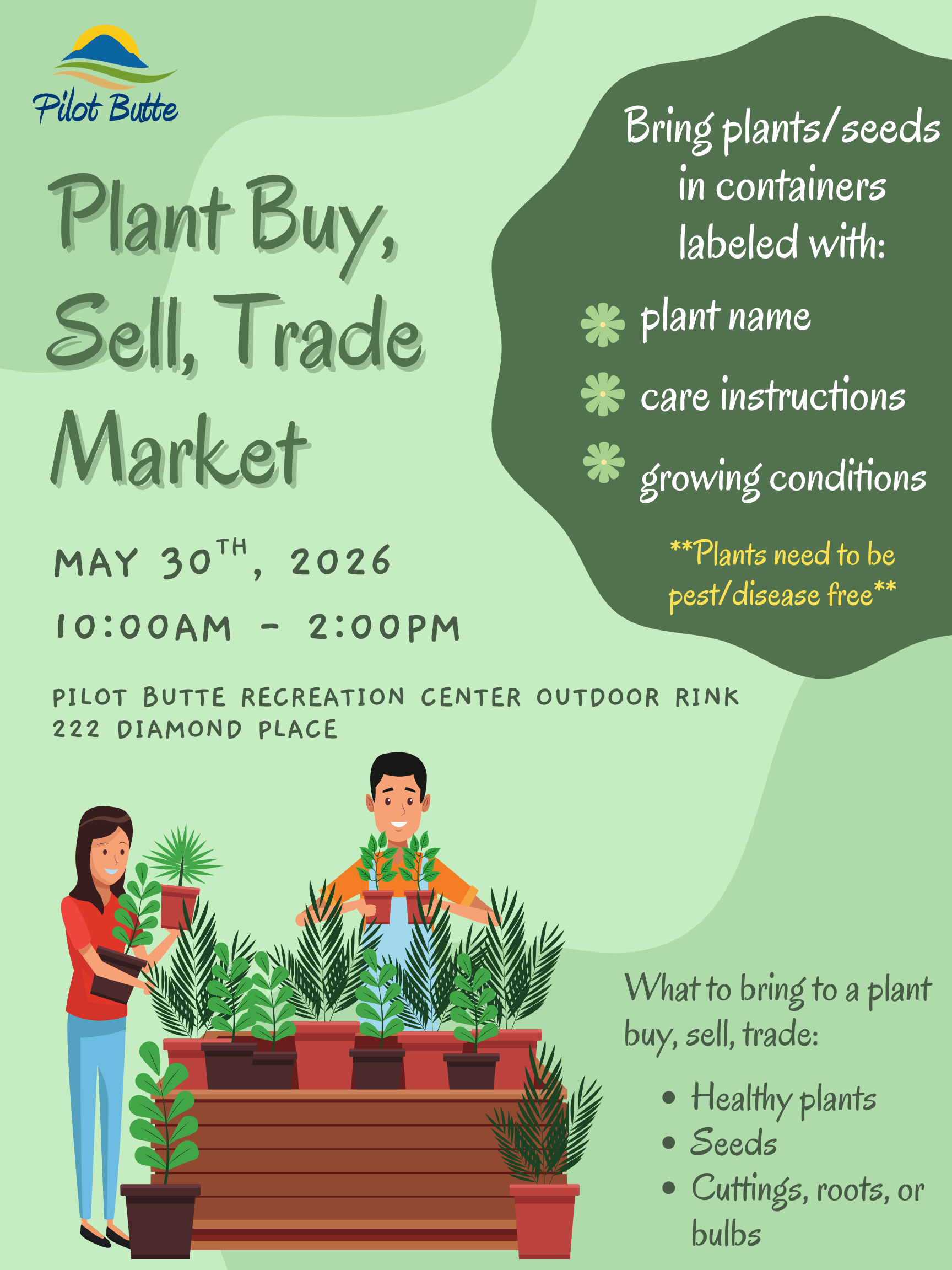 Calling all plant lovers! Join us for a Plant Market on May 30, 2026, from 10:00 a.m. to 2:00 p.m. Whether you're a seasoned gardener or just starting your plant collection, this is the perfect opportunity to connect with fellow plant enthusiasts and grow your garden.