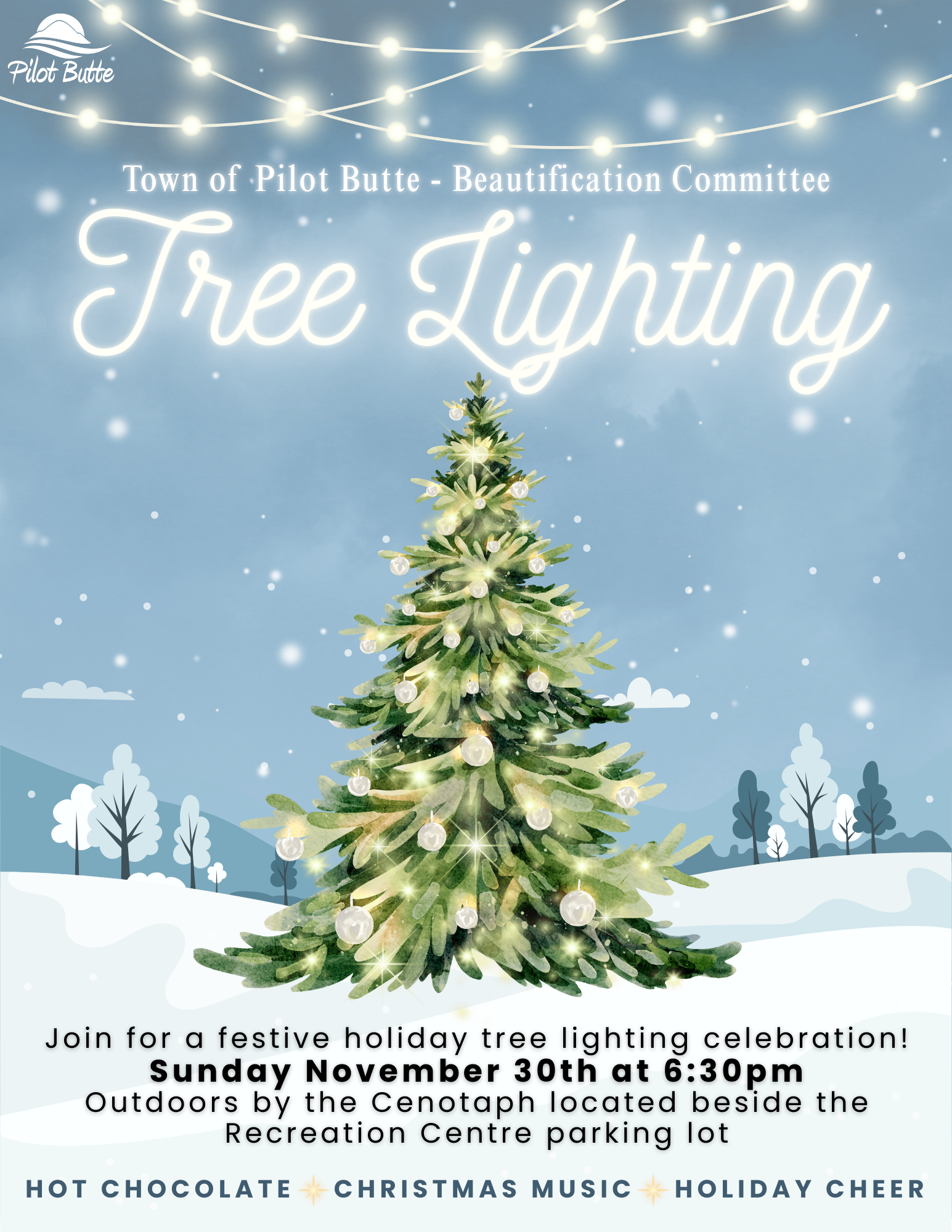 Join us for a Magical Tree Lighting Event on Sunday, November 30th at 6:30 PM at the big beautiful tree near the cenotaph (beside the Recreation Centre parking lot).