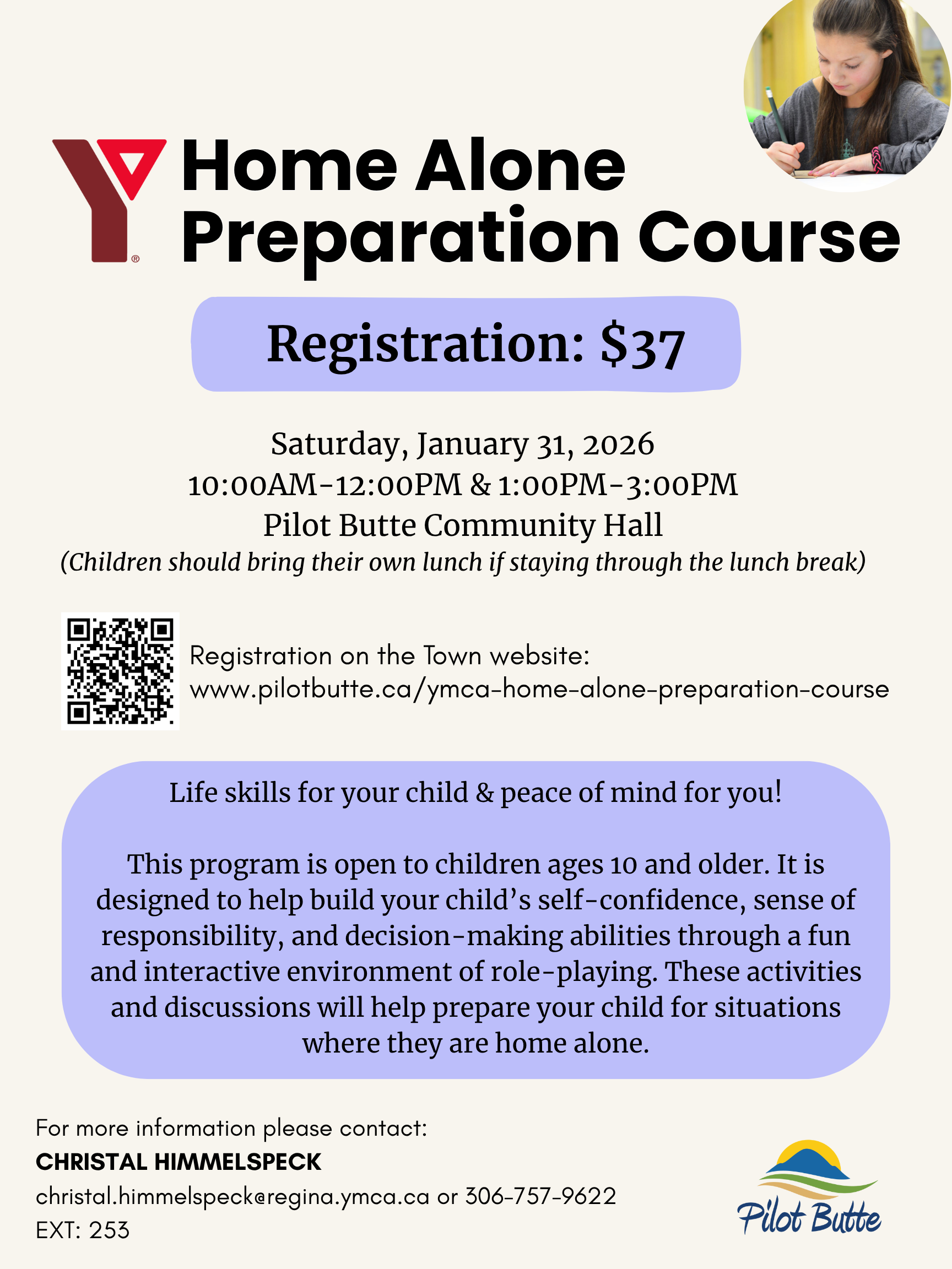 A YMCA Home Alone Preparation Course will be hosted in Pilot Butte this December!